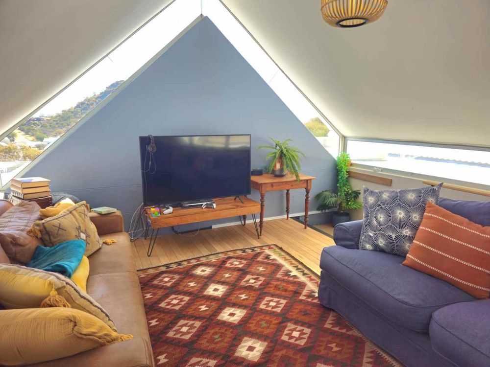 Indoor entertainment area with blinds